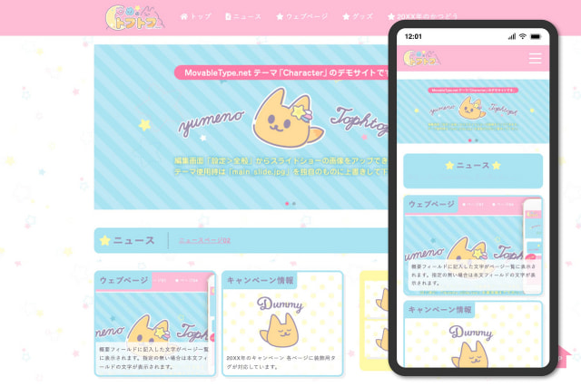 企業のキャラクターや、ゆるキャラなどの公式サイトを素早く作成できます。