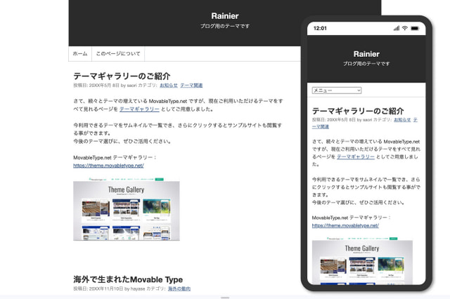 シンプルなブログ用のテーマです。他のテーマでサイトをつくりその配下にこのテーマを使ったブログを構築することも可能です。